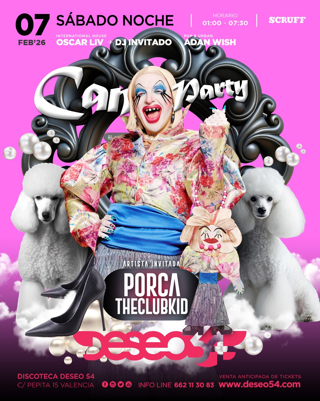 La inimitable Porca ThekidClub viene desde el más famoso concurso drag de la tv a presentarnos un show de perros!! Djs Oscar Liv + Invitado & Adan Wish.